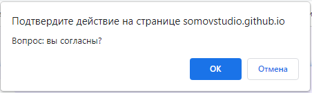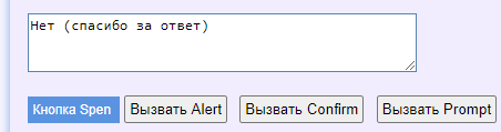 If you press the button "Вызвать Confirm" a question will be asked and the answer will be displayed in the field after clicking on "OK" (or "Cancel")
