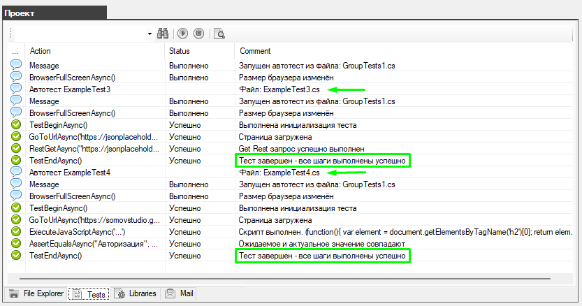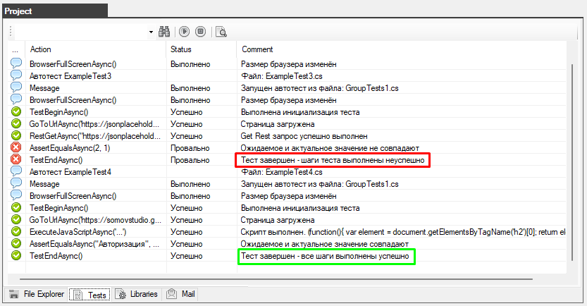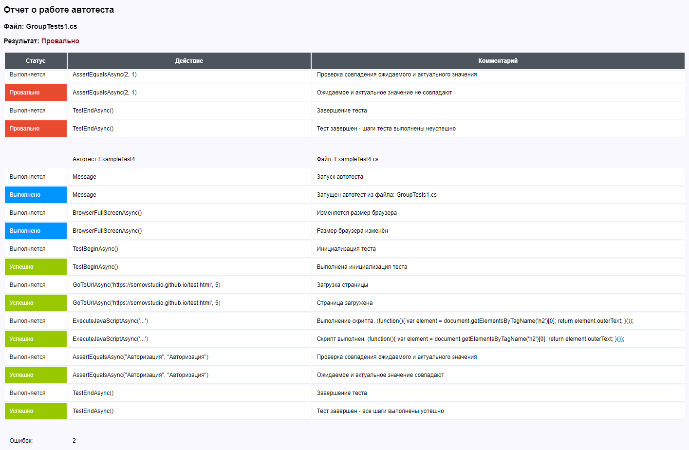 at the same time, the overall result of the GroupTests1.cs group autotest will be considered a failure.