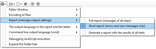 Using the project settings menu, you can switch the report type to "Summary Report", in which case only user messages and error messages will be displayed in the report.