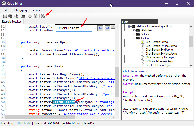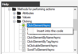 You do not need to manually type the names of the methods, it will be enough to click on it twice (or through the context menu item) so that the method is automatically inserted into the code.