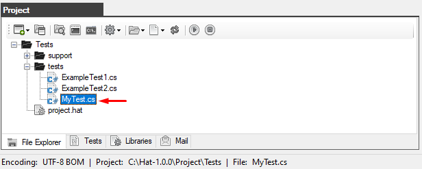 Click OK and a new autotest file will be created. It will immediately appear in the Project window (on the Explorer tab).