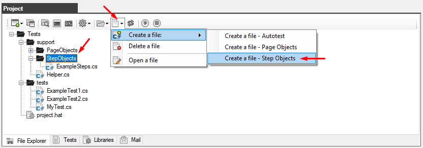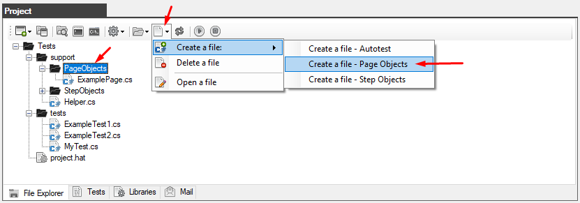 Special templates are also provided for creating the PageObjects and StepObjects pattern files.