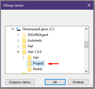 In this case, the Project folder has been created at C:\Hat-1.0.0\