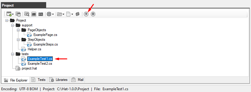 In our case, the ExampleTest1.cs file is launched