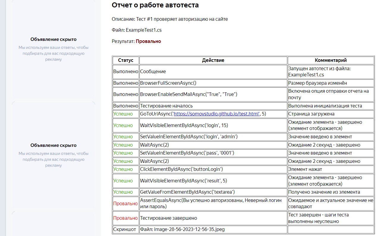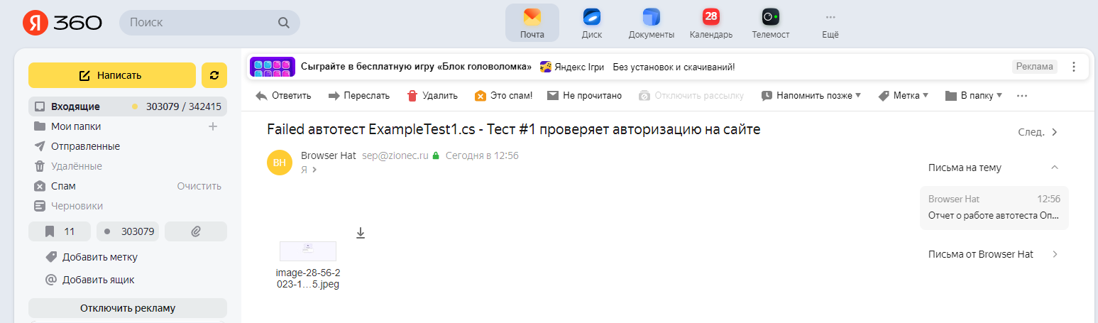 await tester.SendMsgToMailAsync("Text message", "The test was completed successfully");