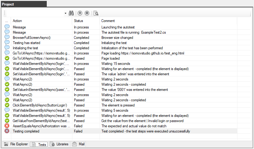 - Run the test - runs the selected autotest