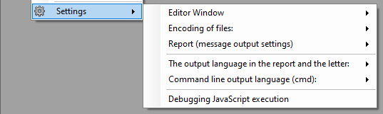 Menu "Project" - creating and opening autotest projects, performing and stopping autotests, as well as settings.