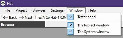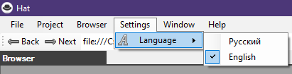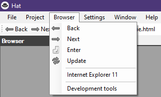 Menu "Browser" - it serves as a browser navigation, as well as allows you to open the developer dashboard "Development Tool" and open the Internet Explorer 11 window