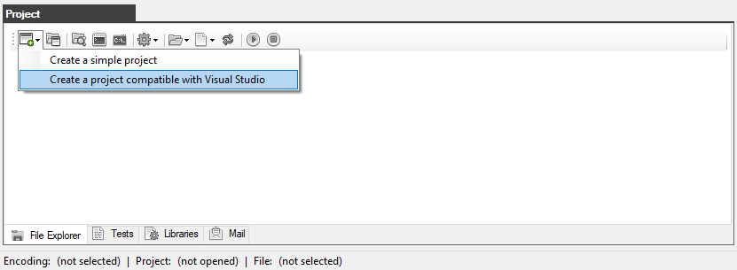1. In the Project window, on the Explorer tab or in the main Create Project menu, click the "Create a project compatible with Visual Studio" button