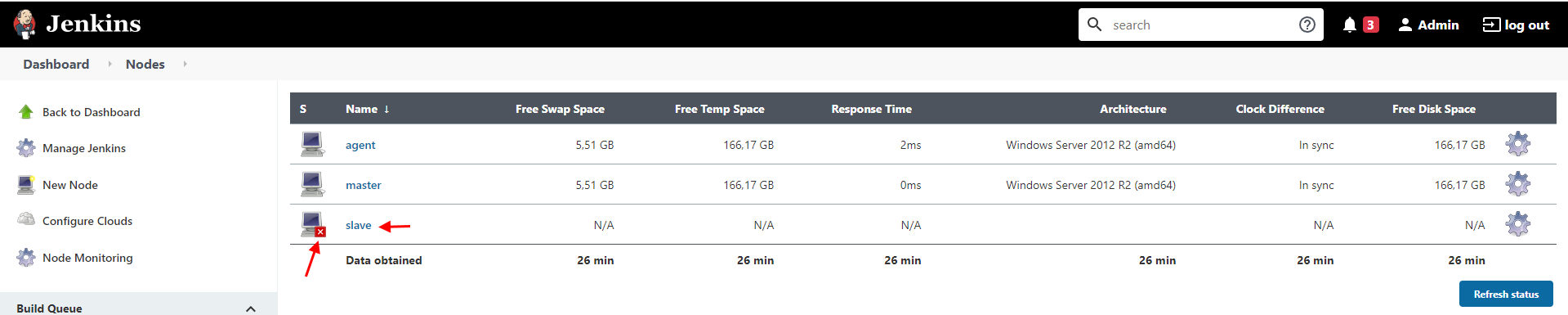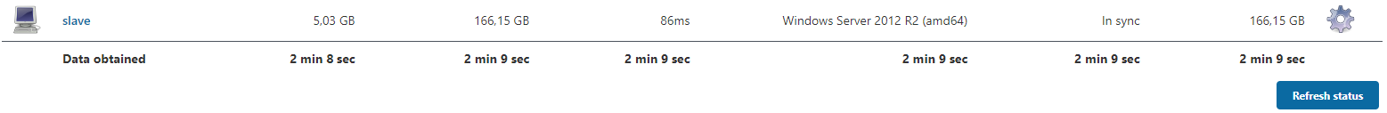 Теперь если посмотреть в список агентов мы видим как slave показан активным (без красного квадратика)