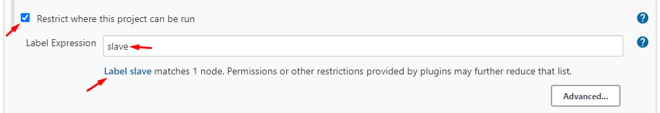 В настройках задачи включите опцию "Restrict where this project can be run"