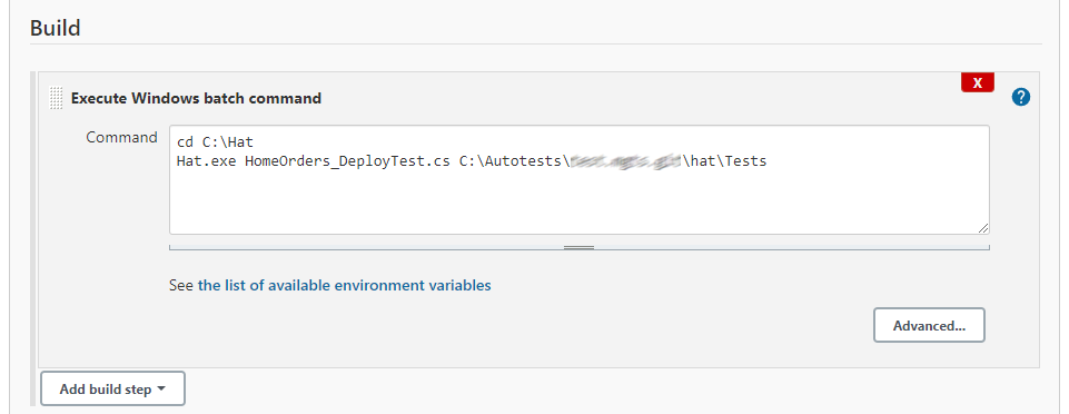 В разделе "Build" добавьте команду "Execute Windows batch command".
