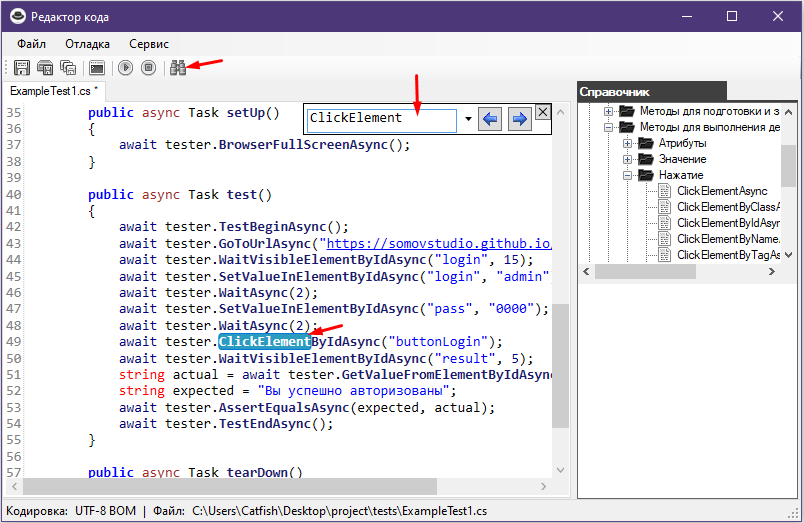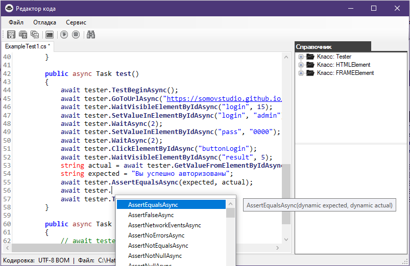 Редактирование автотестов выполняется в специальном редакторе.