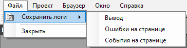 Меню "Файл" - дает возможность сохранить логи в txt файлы.