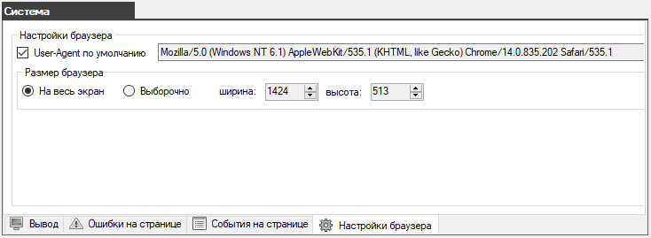 Вкладка "Настройки браузера" - основные настройки браузера.