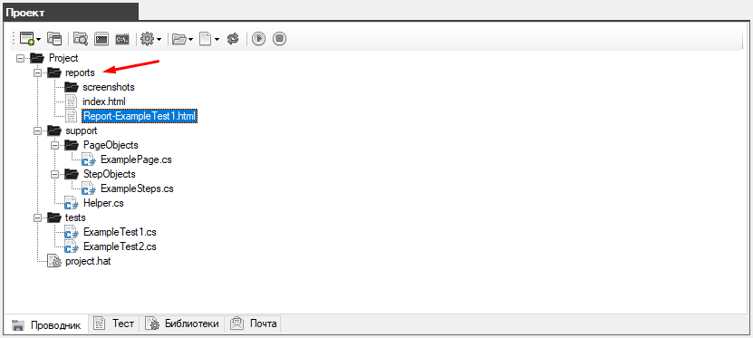 По завершению работы автотеста в корне проекта будет создана папка "report" в которой содержаться все отчеты и скриншоты с результатами выполненной проверки.