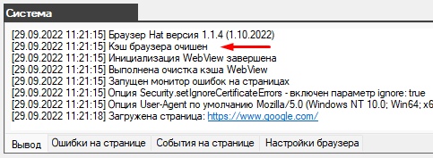 Браузер автоматически выполняет очистку кэша перед каждым запуском и сообщает об этом в консоли