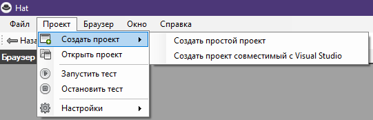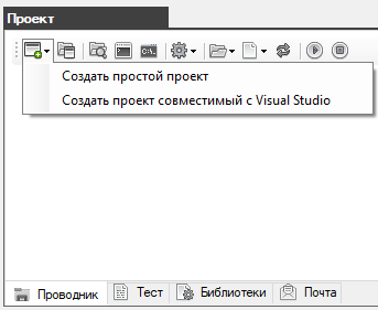 1. В окне "Проект" на вкладке "Проводник" или в основном меню "Создать проект" нажмите кнопку "Создать проект совместимый с Visual Studio"