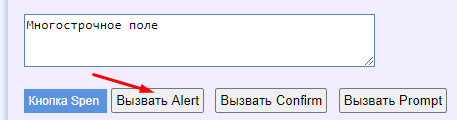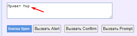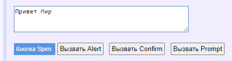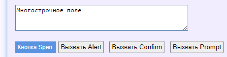Если нажать на кнопку "Вызвать Confirm" будет задан вопрос и выведен ответ в поле после нажатия на "ОК" (или "Отмена")