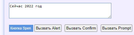 Если нажать на кнопку "Вызвать Confirm" будет задан вопрос и выведен ответ в поле после ввода числа и нажатия на "ОК"